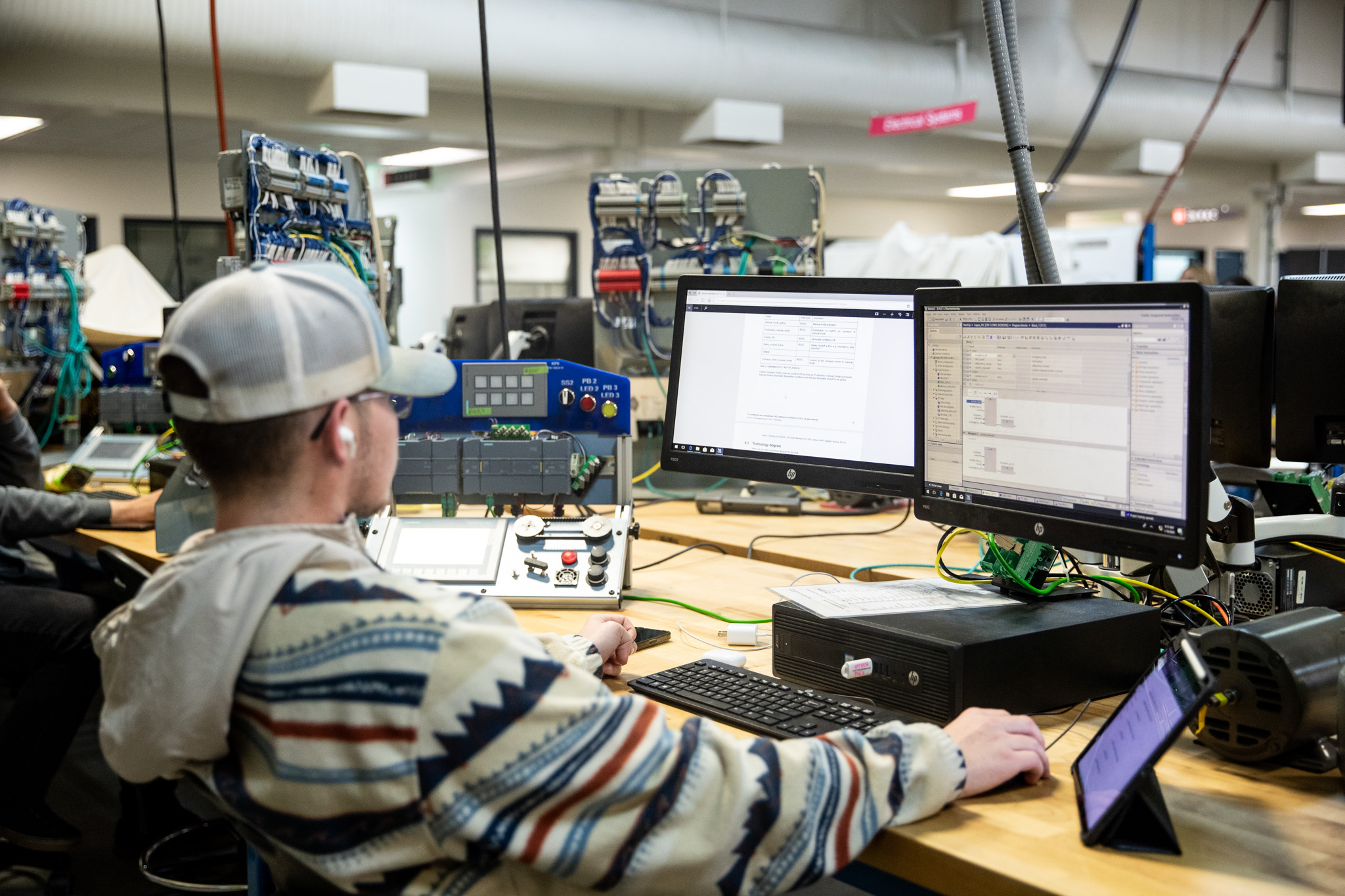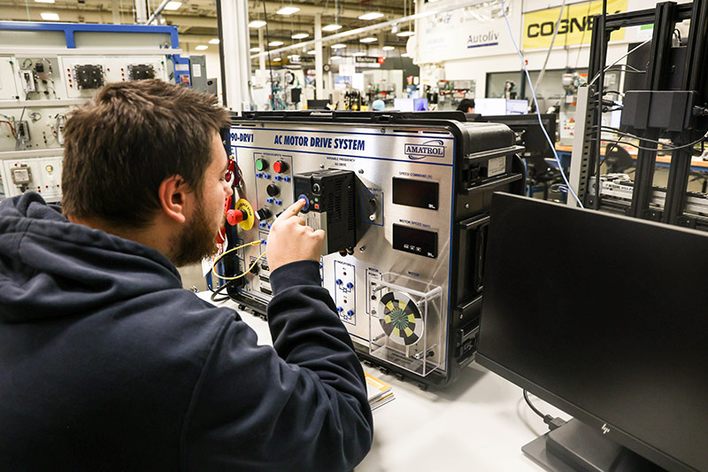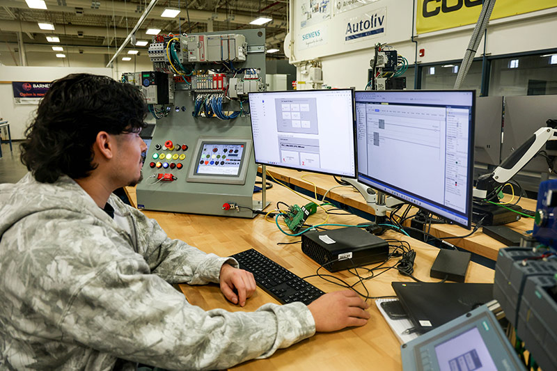 The Controls Technician program prepares students for advanced work as Control Systems Technicians in an automated manufacturing environment. This certificate provides hands-on training in Programmable Logic Controllers (PLCs), industrial robots, industrial networking, servo system programming, vision systems, and Human Machine Interface (HMI) programming.